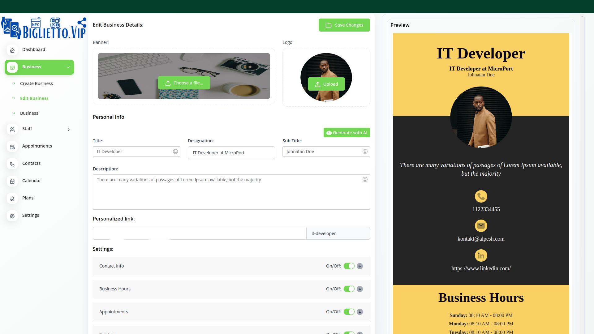 Si, puoi utilizzare il tuo biglietto digitale proprio come un sito web (prova) inserendo tutte le info navigabili da pc e da mobile.