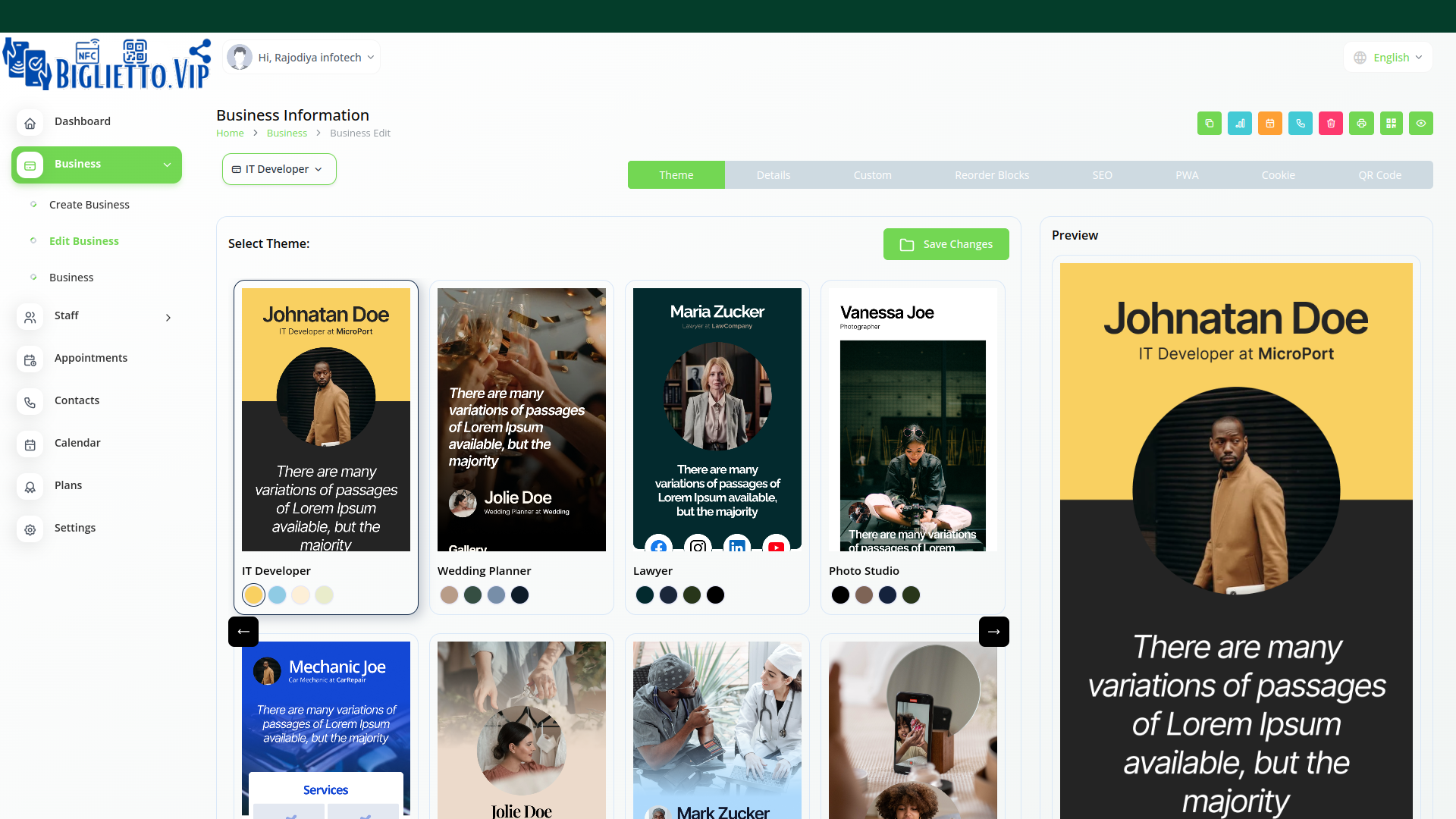 Personalizza ogni aspetto utilizzando le decine di temi presenti su CarDigital per creare il tuo Biglietto Digitale.