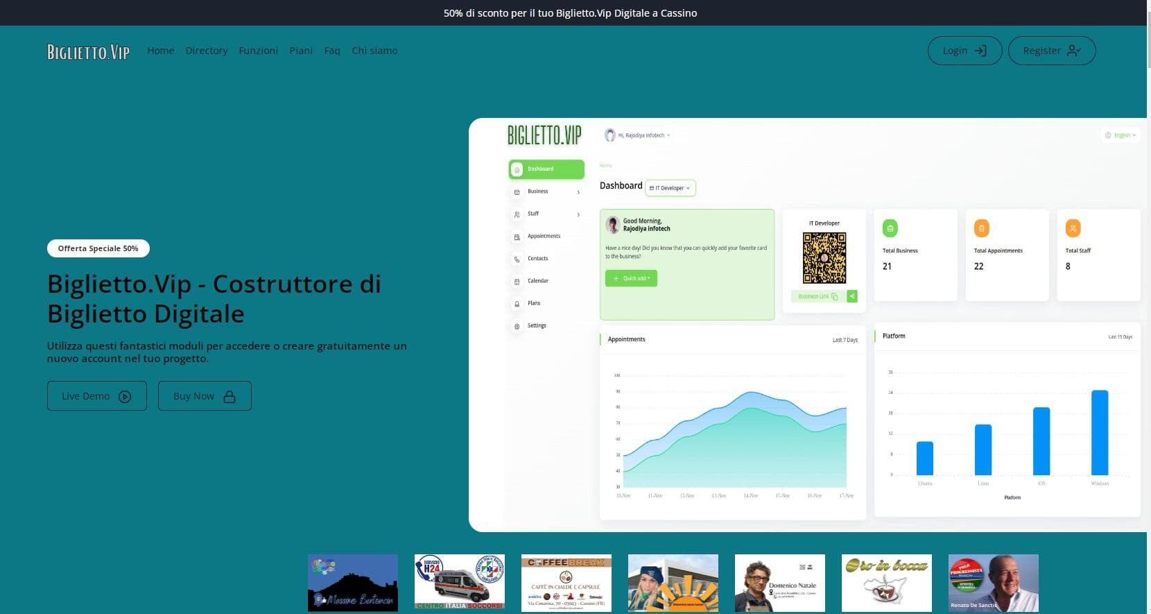 Con Biglietto.vip, hai la possibilità di modernizzare la tua attività e semplificare la gestione dei biglietti. Non lasciare che la tua attività resti indietro nella digitalizzazione: contattaci oggi stesso per scoprire come Biglietto.vip può aiutarti a creare biglietti digitali unici e a gestire le tue vendite in modo efficace!