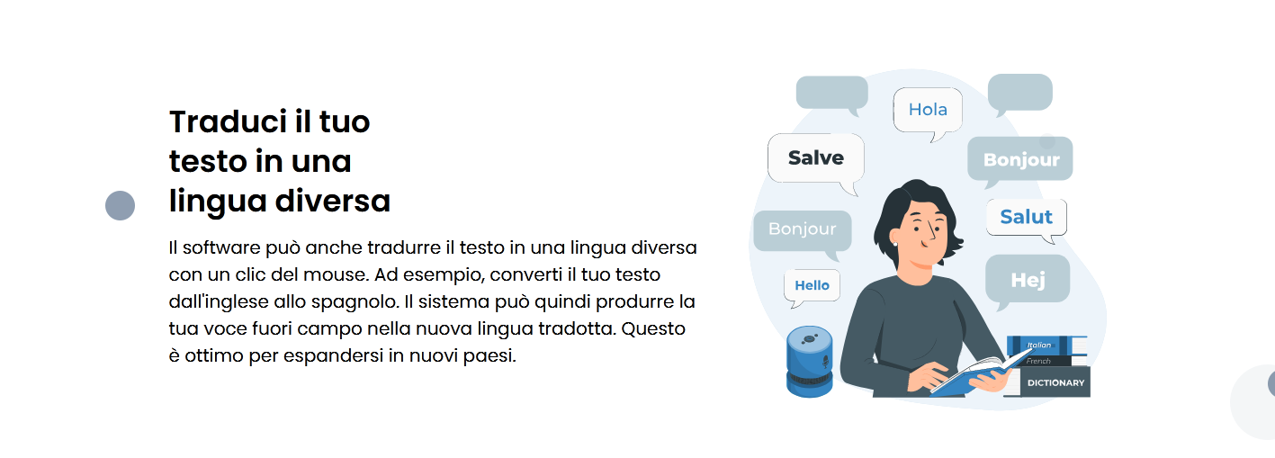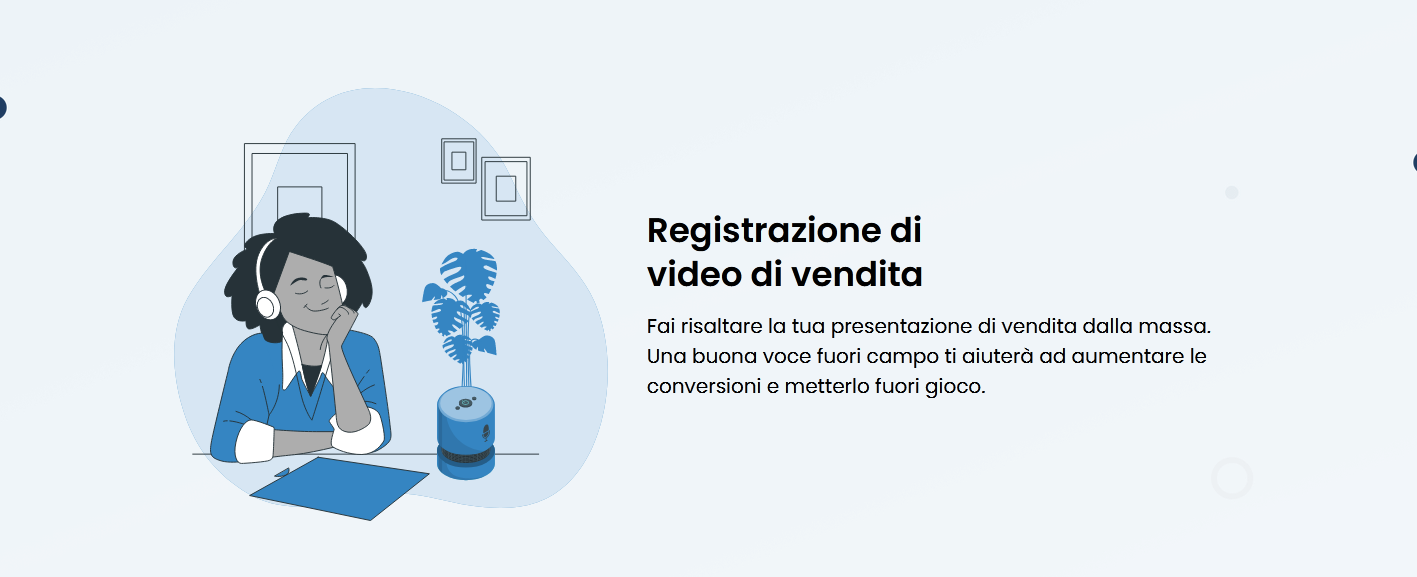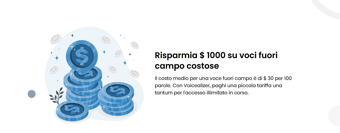 - Non dovrai più pagare bollette esagerate per la voce fuori campo. Il software produrrà voci fuori campo dal suono umano senza canone mensile. E tutto con un utilizzo illimitato.